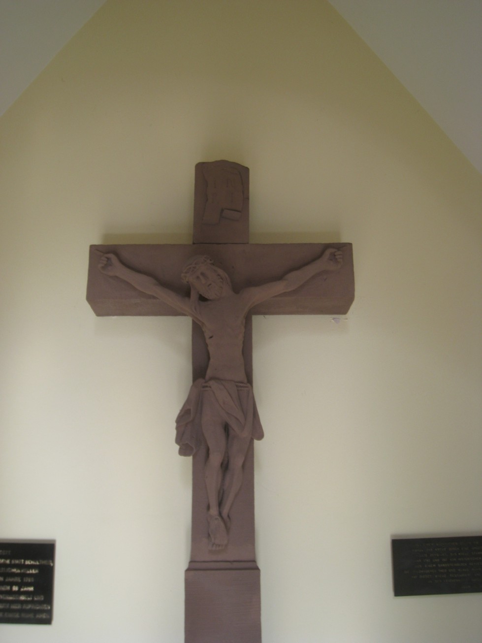 Das rekonstruierte Kreuz wurde in der Friedhofskapelle der Gemeinde Neuleiningen witterungsgeschützt wieder aufgebaut.